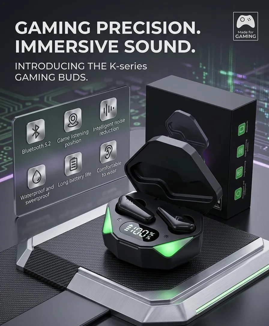 • Package Includes: 1 x Gaming Earbuds, 1 x Charging Case, 1 x User Manual.